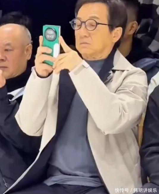 谁能想到,荧幕上又帅又能打的成龙,看秀时居然是另一副模样——全程坐得笔直,眼睛死死盯着T台,生怕漏了模特身上哪件衣服、哪个搭配。手里的手机就没离过手,举起来咔嚓咔嚓拍个不停,不管是衣服的剪裁、配饰的细节,还是秀场的布置,都要记录下来,那认真劲儿,跟上课生怕错过重点的学生似的。